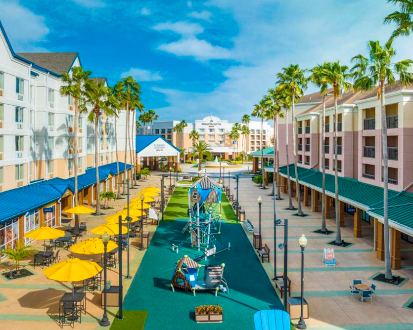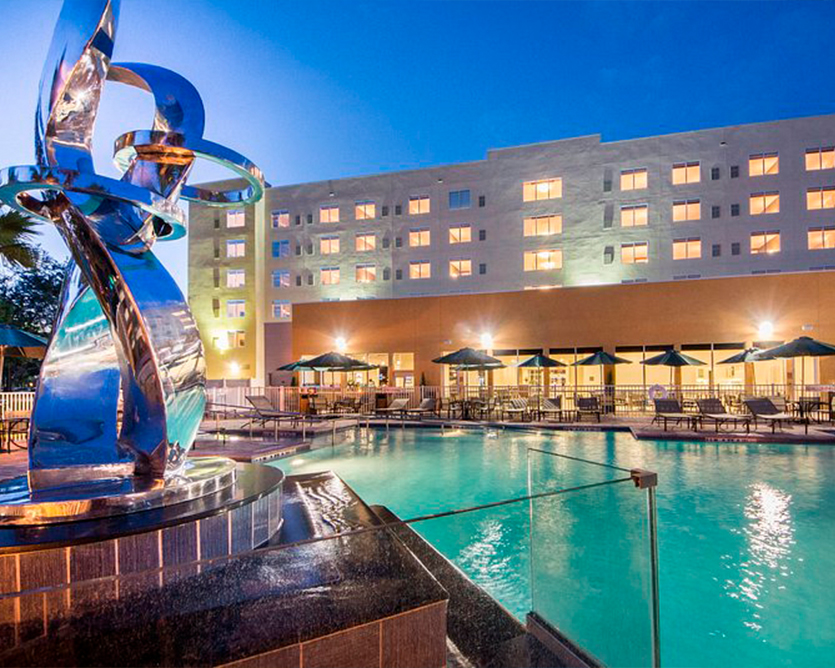 Hotel ideal para familias con suites amplias, desayuno buffet gratis, Wi‑Fi sin costo, gimnasio 24/7 y piscina exterior. Muy cerca de Universal Studios, Disney, Mall at Millenia y Epic Universe