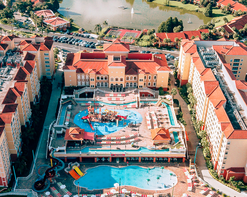 Un resort familiar con villas espaciosas tipo casa, desde estudios hasta unidades de dos habitaciones con lofts. Cuenta con 14 piscinas, parque acuático Shipwreck Island, mini golf, desayuno a la carta (con cargo), renta de bicicletas y canchas de tenis. A un kilómetro de Walt Disney World, ideal para estancias prolongadas